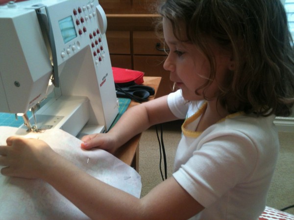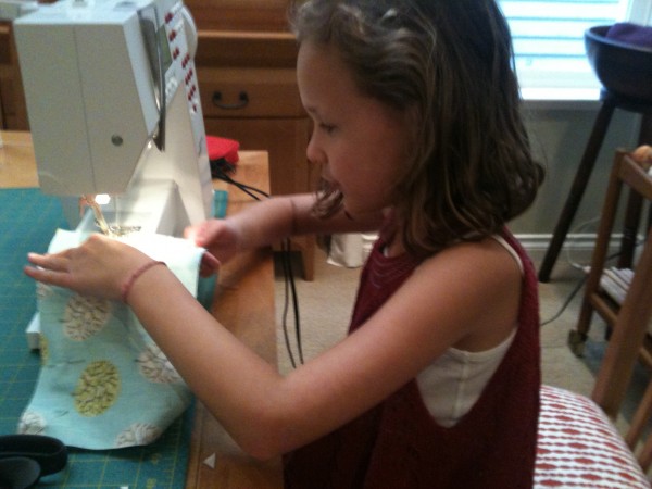 At 8 and almost 7, they are a bit young to complete the entire messenger bag from MMMcrafts on their own. The parts I did were rotary cut all pieces, pressing, sewing the bag lining to the outer bag, and the final top stitching. They were however, able to complete the remaining top stitching and bag construction on their own.